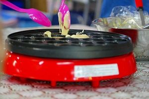 たこ焼き機でホットケーキミックスを材料に、調理しました。