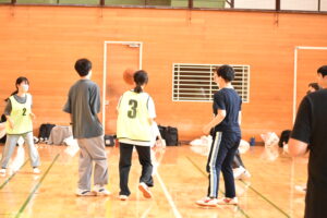1年生の後半授業はバスケットボール、