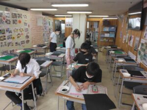 < はむちゃんです♪1年生のみなさんは文化祭に向けて書道作品を作成中です!