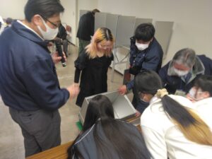 < 投票用紙から投票箱、記入場所まで本格的な選挙と同じ体験が出来ました!