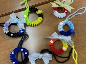 < ぴよちゃんです♪この日はお楽しみ会でクリスマスリースを作ったよ!
