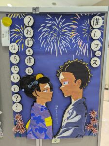 文化祭ポスター部門・・・グループで協力し合い「推しフェス」ポスターを作製しました。