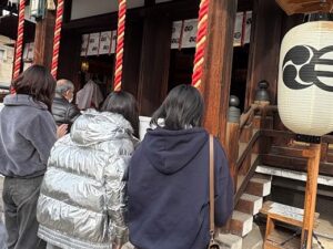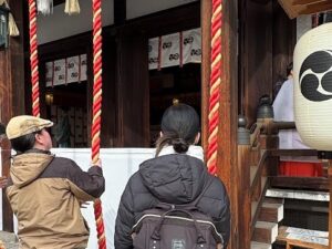 < 神社ではちょうど「えびす祭」がおこなわれていて、とってもにぎやかでした!